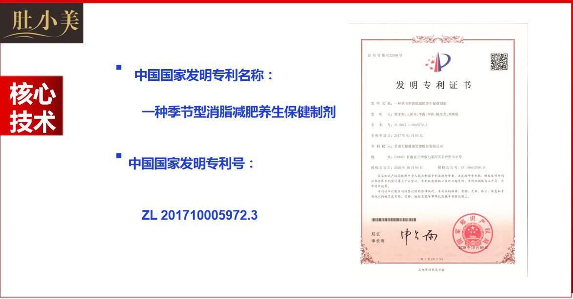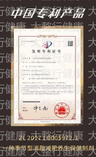 一种季节型消脂减肥养生保健制剂 发明专利证书