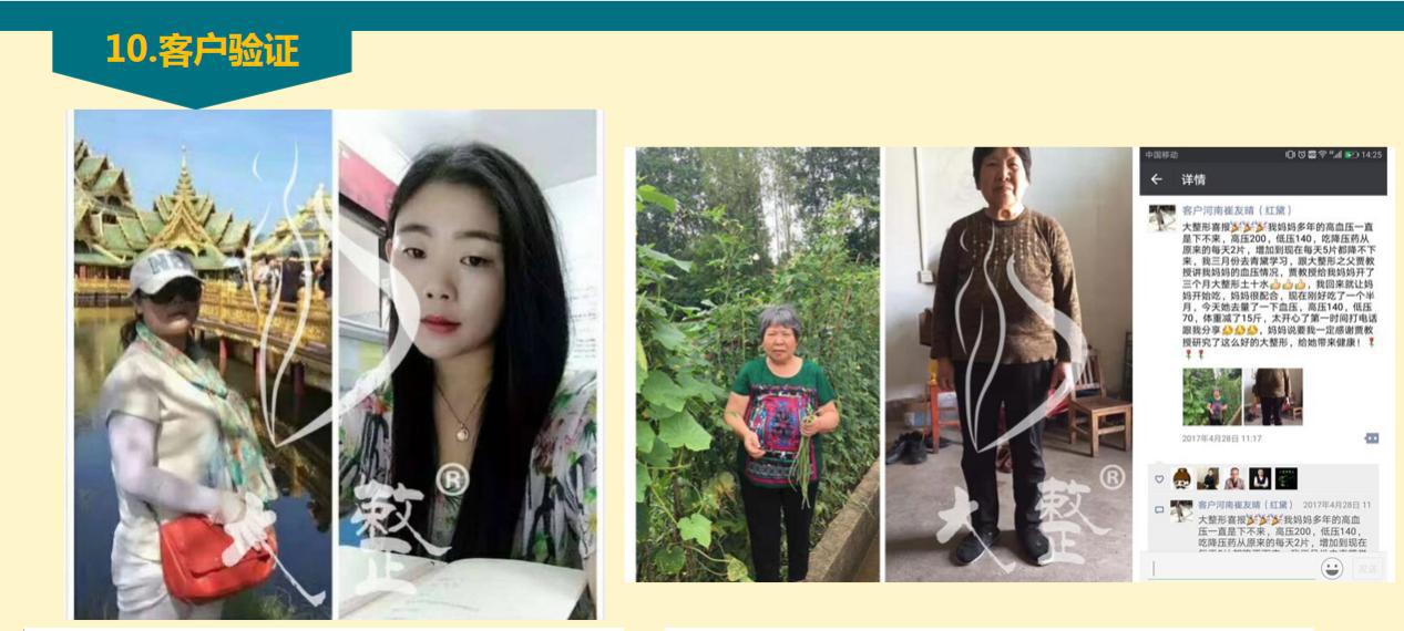 10.2016年6月-2017年12月,通过在上海、无锡、长沙、郑州、兰州、乌鲁木齐、广州等地试验,不断完善并确立了“大整行健康”在传统市场所要使用的商业模式:OTO人人红裂变商业模式。